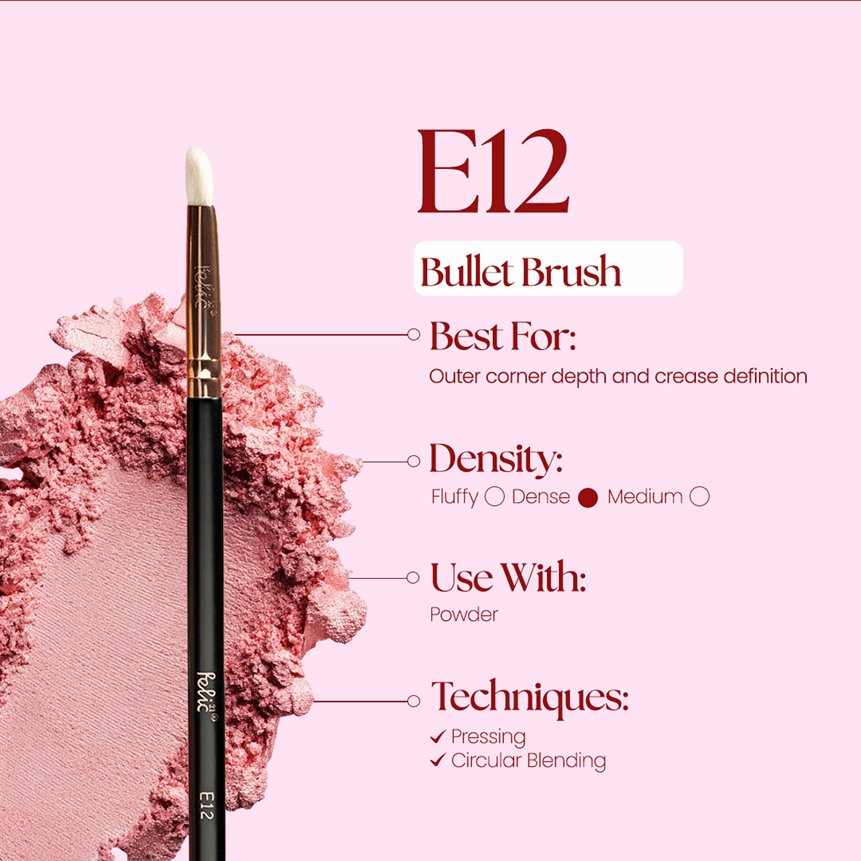 The E12 Bullet Brush features a tapered, pointed tip designed for precise application in smaller areas of the eye. Ideal for adding depth and definition exactly where needed.